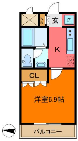 | 間取り詳細 | 洋室 6.9畳 、K 2.5畳 |