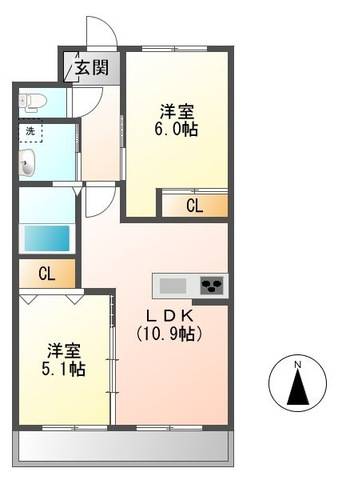 | 間取り詳細 | 洋室 6畳 、洋室 5.1畳 、LDK 10.9畳 |